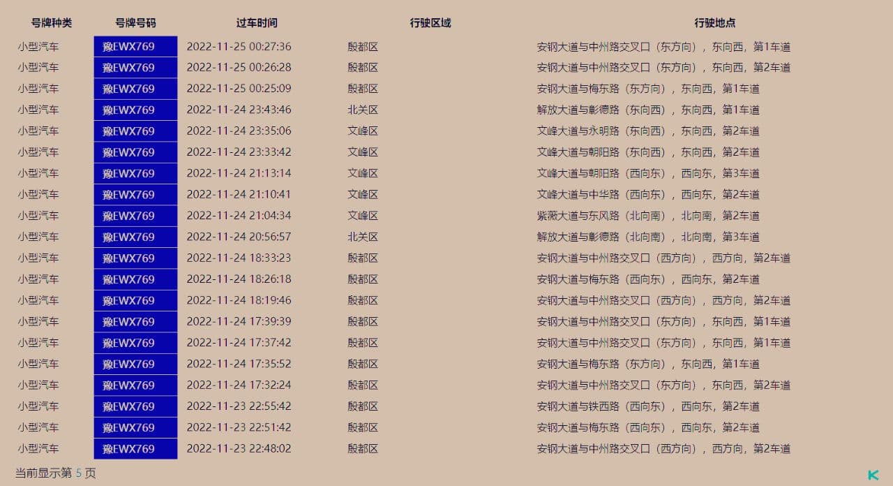 只出5页,这5页内容跑了什么路,取决于他平时开车的频率,比如每天都开车的话,5页内容可能仅仅是他几天的记录。如果频率不高,5页的内容可能覆盖了几个月的活动轨迹。车辆轨迹只记录在道路的行驶情况,车辆停靠地点无法直接通过车辆轨迹得出,需要你结合车主的行为逻辑,自己推断。