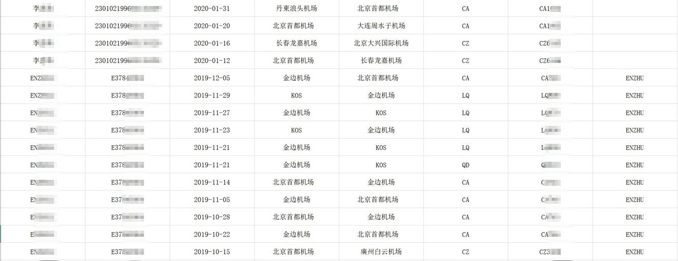 航空订票记录:有过订票记录,但是不一定实际出发。实际的航班以离岗记录里的为准。
