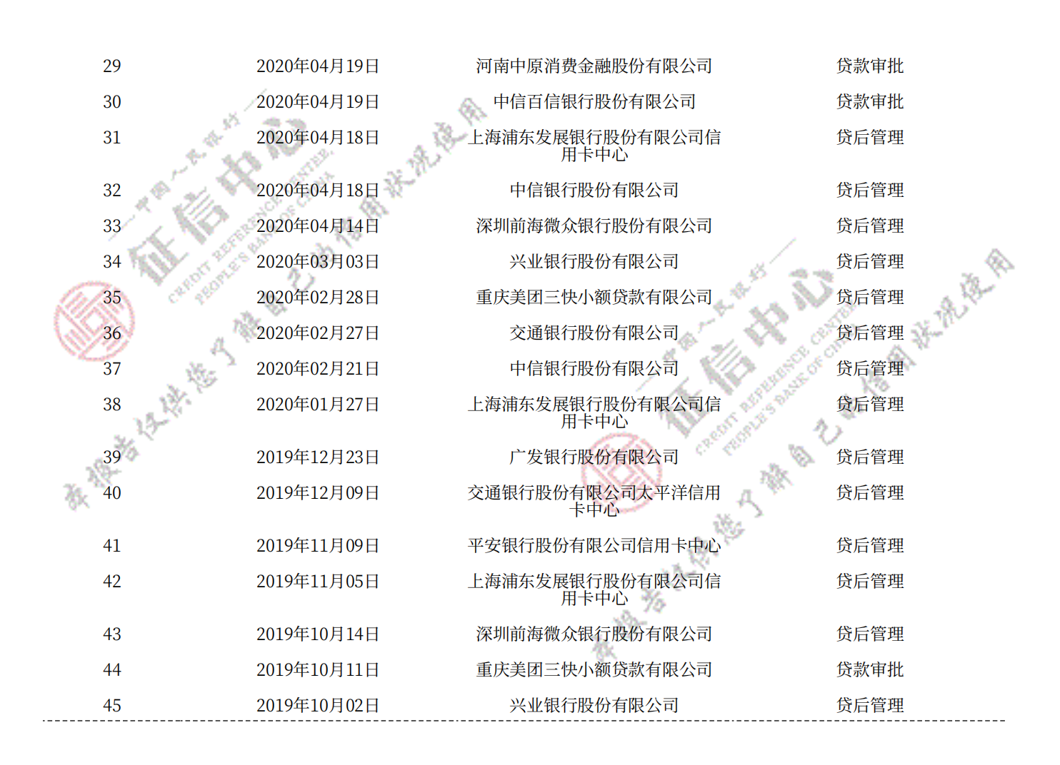 征信查询:个人可以通过授权的方式查询自己的信用报告和信用评分,了解自己的信用状况。