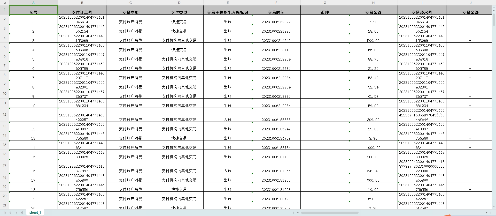默认查询最近一年流水,如有指定时间段,请与在线客服联系